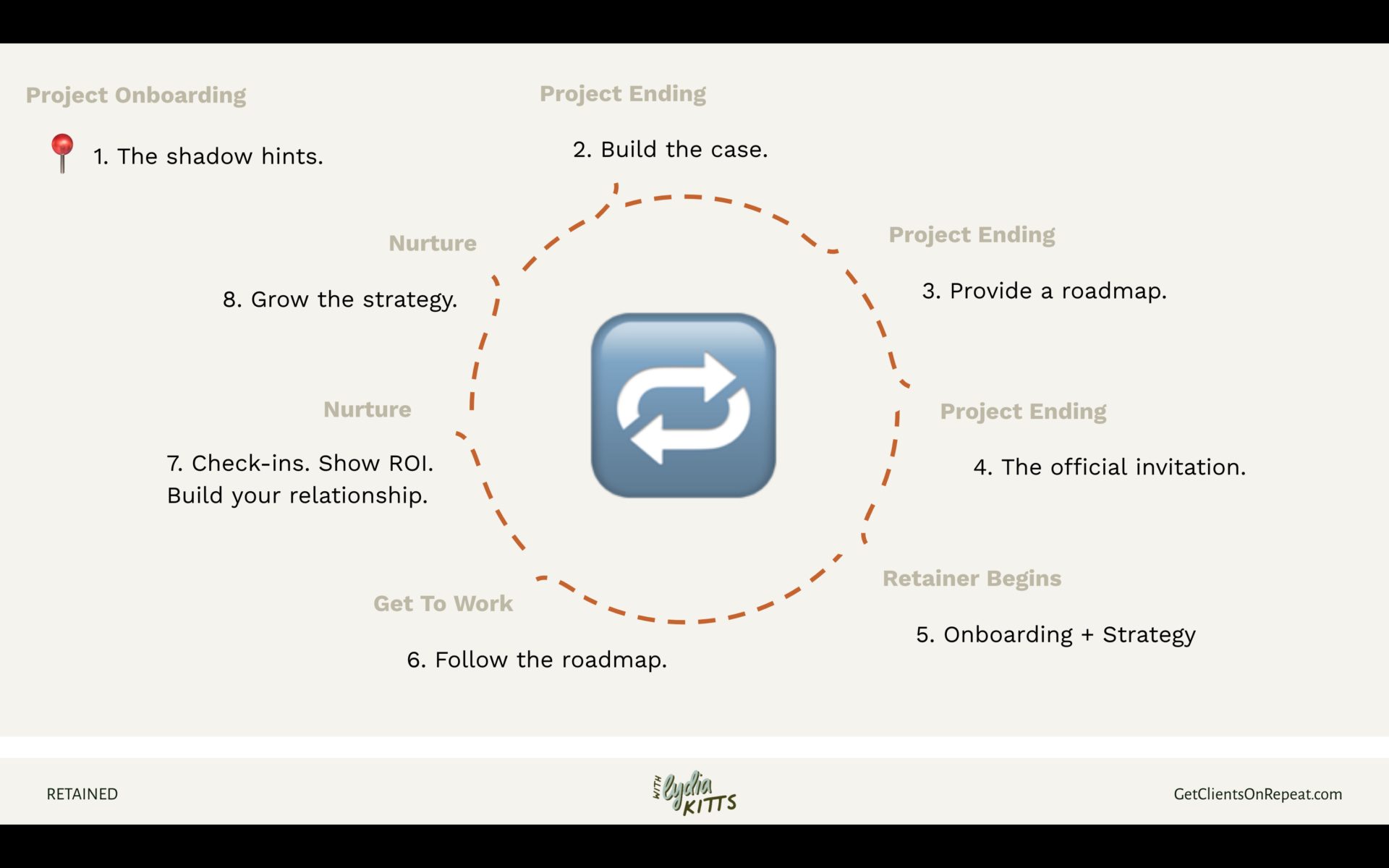 Below you’ll find an example of what my invitation process loosely looks like when I’m trying to convert a client to become a retainer client. The next section covers the whole process, but this checklist focuses on what I do to convert clients.